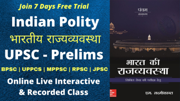 यूपीएससी व अन्य राज्यों के लोक सेवा आयोग की परीक्षाओं को ध्यान में रखते हुए  "भारतीय राज्यव्यवस्था" (Indian Polity) के सम्पूर्ण पाठ्यक्रमों को इस ऑनलाइन क्लास में पूरा किया जायेगा।